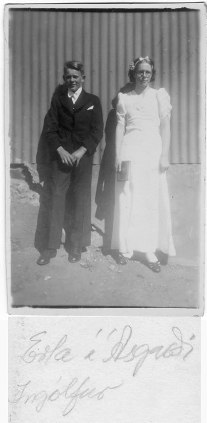 Væntanlega fermingardagur. Ingólfur Viktorsson (f. 16.04.1924, d. 23.08.2004) Erla Guðmundsdóttir í Ásgarði (f. 05.06.1924, d. 26.11.1999)